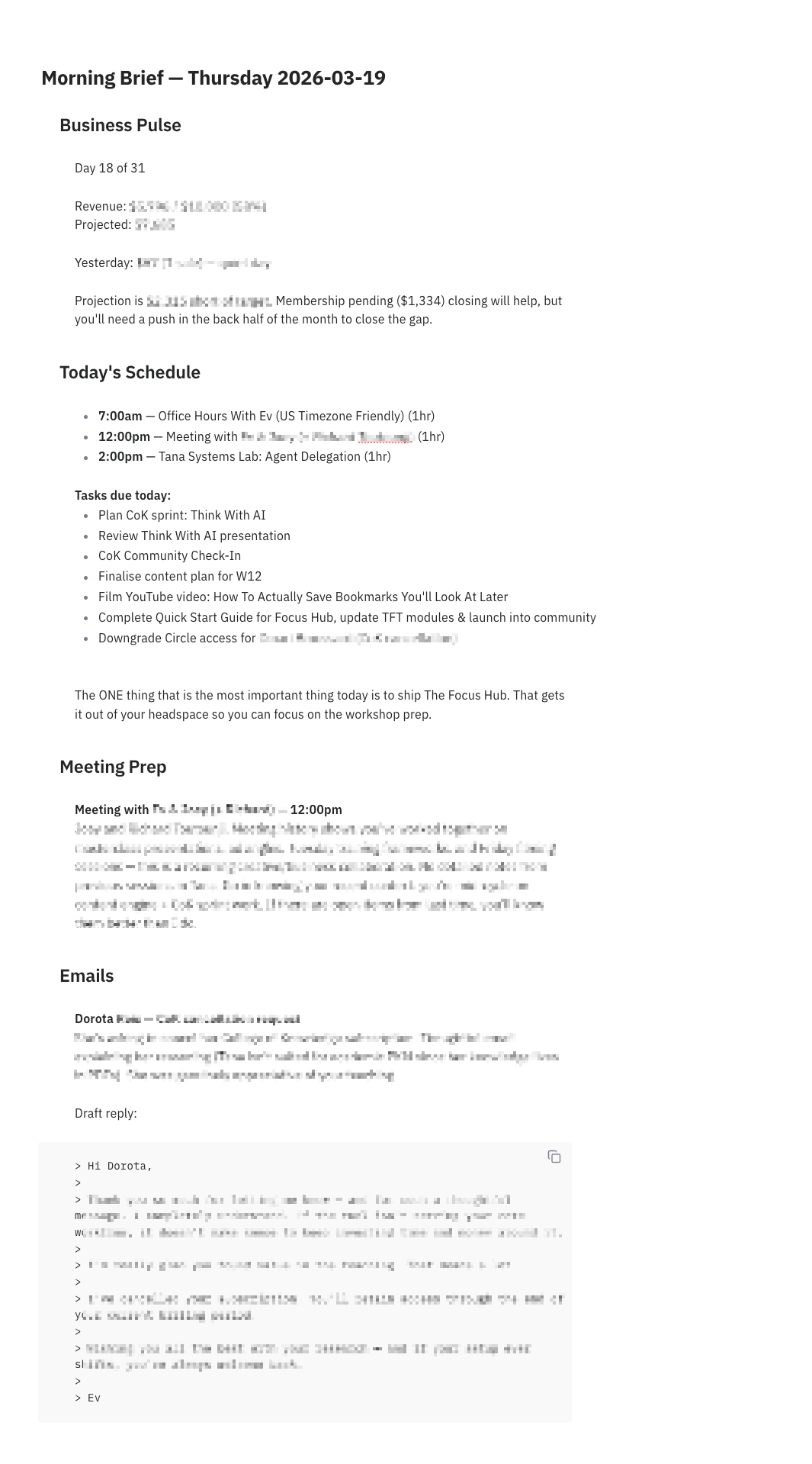In five minutes every morning I’m clear on what to work on, what’s happening in my inbox, and what matters most today. Before I’ve even finished my coffee.
