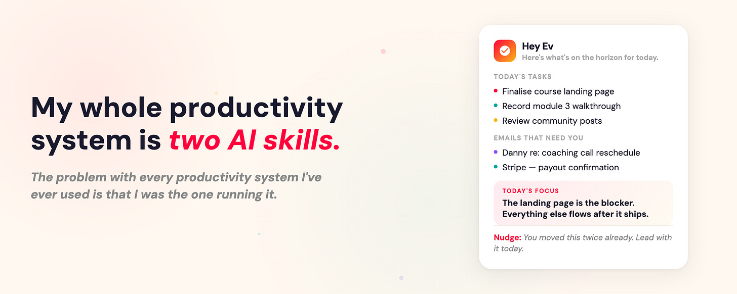 A few months ago I built an AI chief of staff in Claude Code. His name is Chad, and among the many things he does, there are two skills that have completely changed how I work.