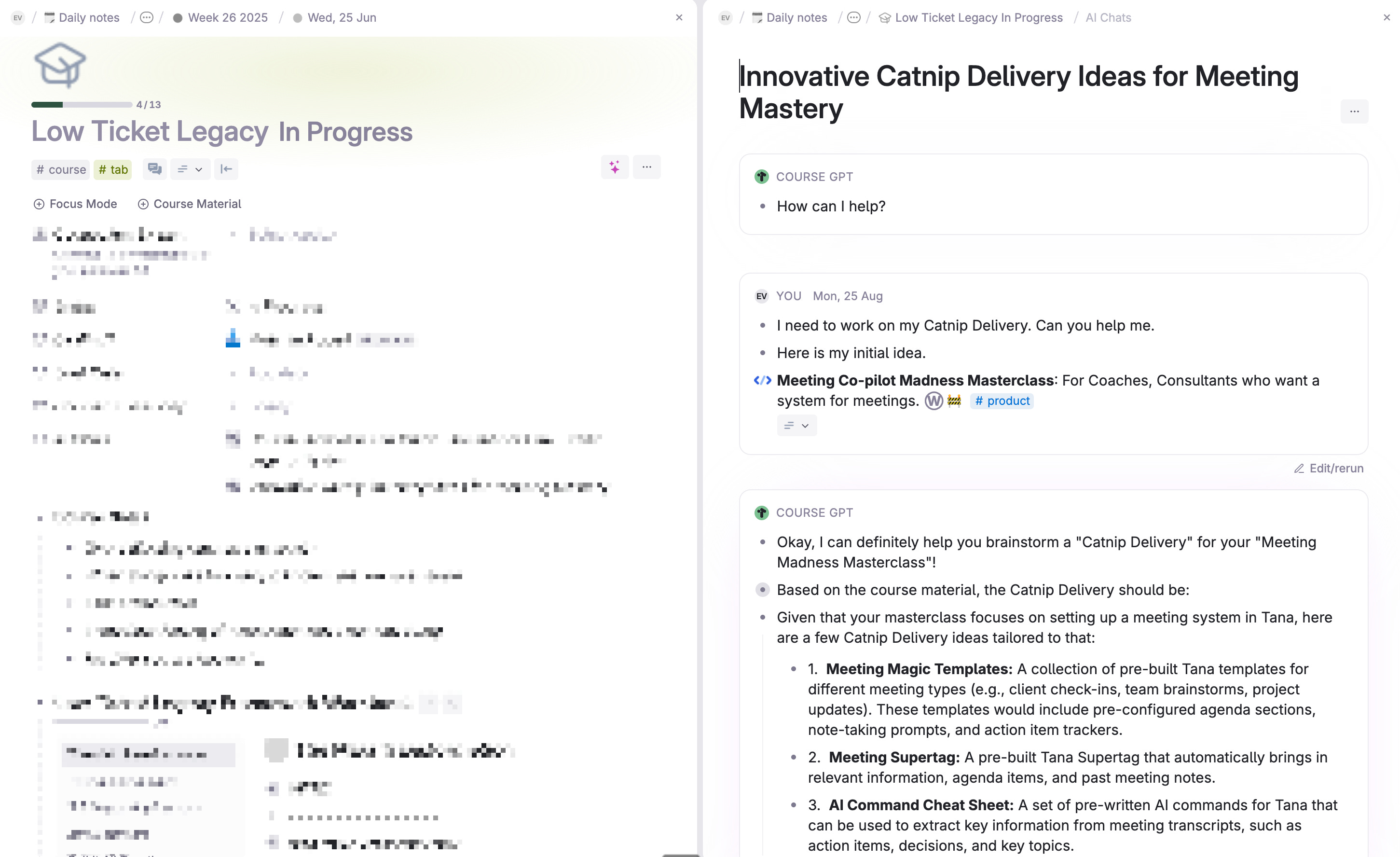 While you can build a course co-pilot in any combination of tools, I've built mine in Tana and it's like it was designed for workflows like this.